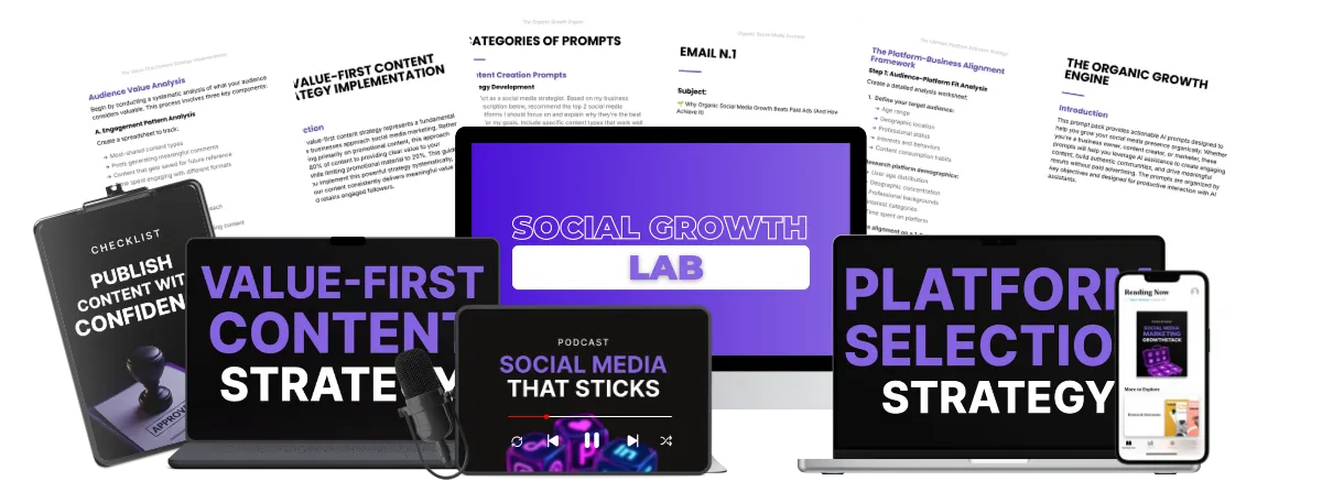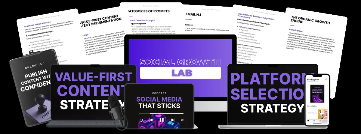 When you grab Social Media That Sticks from Social Growth Lab, you’re getting the complete roadmap to building an audience that actually engages and buys. You’ll have everything you need to grow consistently without ads, plus instant access to 🎁 4 exclusive bonuses designed to cut the guesswork and fast-track your results from day one.