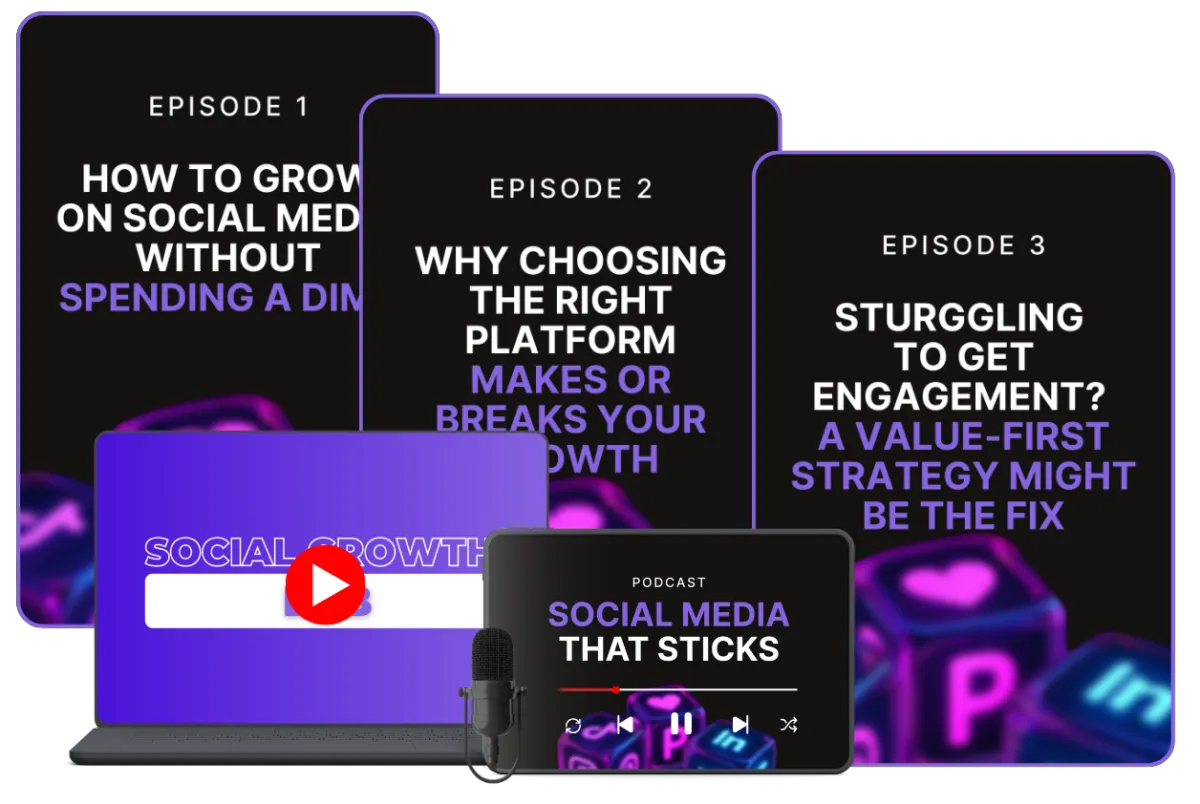 The Social Media That Sticks Podcast: Core audio lessons you can listen to anytime that walk you through platform strategy, content creation, consistency, engagement psychology, and community building — everything you need to grow without relying on ads.